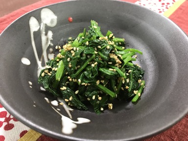 いつものほうれん草のごま和えに生姜をプラス身体もぽかぽかおひたしの完成 ☆材料☆(4人分) (1人分25.4kcal たんぱく質1.7g ...