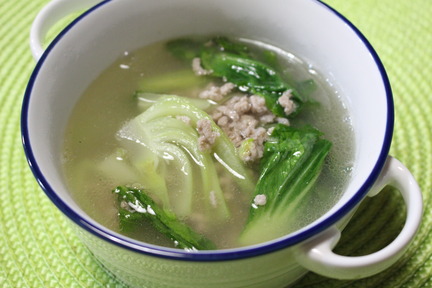 4.チンゲン菜の茎の部分を加えてさらに煮る